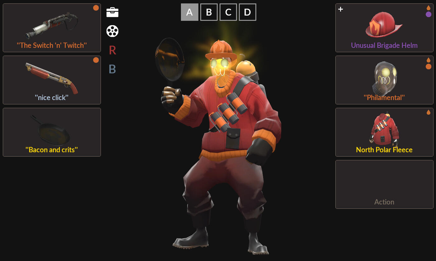 1. π§‘ as a tf2 pyro - the "skin" is suit (red) or glove (dark gray) colored